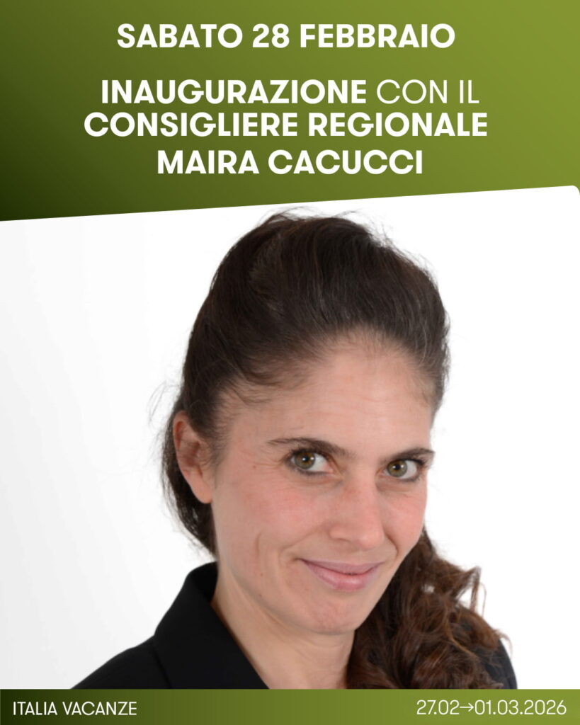 Alle 11:00 di sabato 28 febbraio si svolgerà l’inaugurazione ufficiale di Italia Vacanze, che vedrà la partecipazione del Consigliere di maggioranza di Regione Lombardia Maira Cacucci.