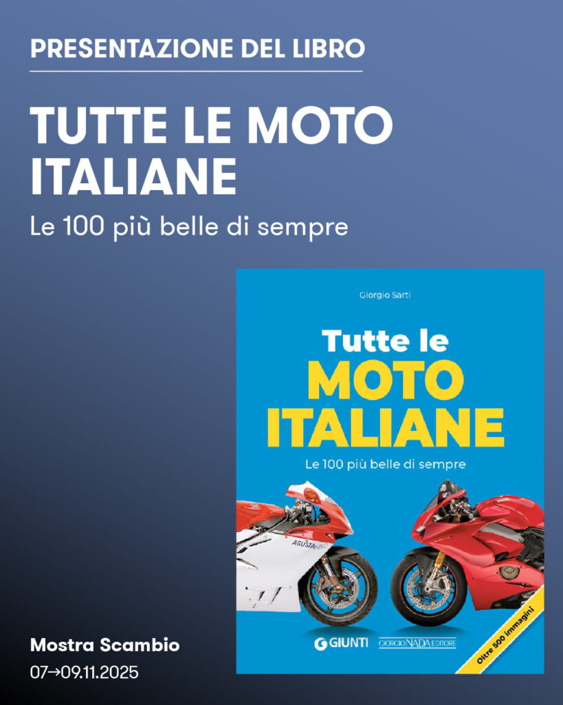 Allora non puoi perdere la presentazione del libro “Tutte le moto italiane: le 100 piรน belle di sempre” (scritto da Giorgio Sarti perย Giorgio Nada Editore), che si terrร alle 12:00 di sabato 8 novembre nell’area centrale del Padiglione C diย Mostra Scambio!ย